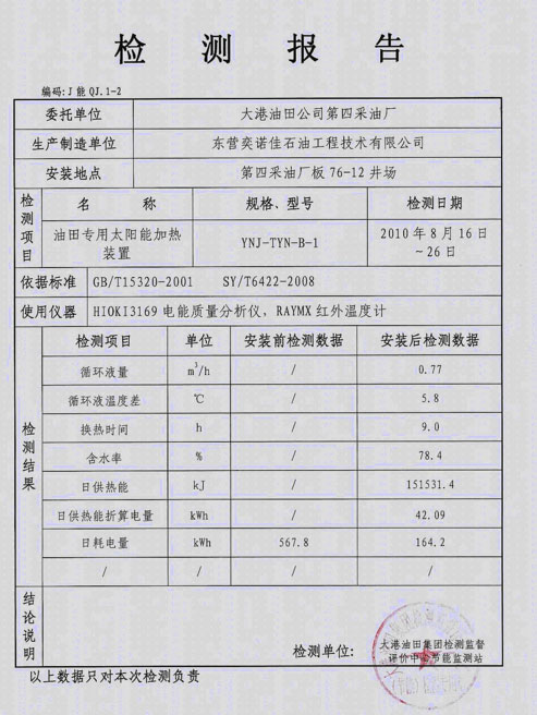 大港油田第四采油廠板76-12井場(chǎng)應(yīng)用光熱加熱裝置替代原輸油電加熱裝置,改造后節(jié)能率為66%。