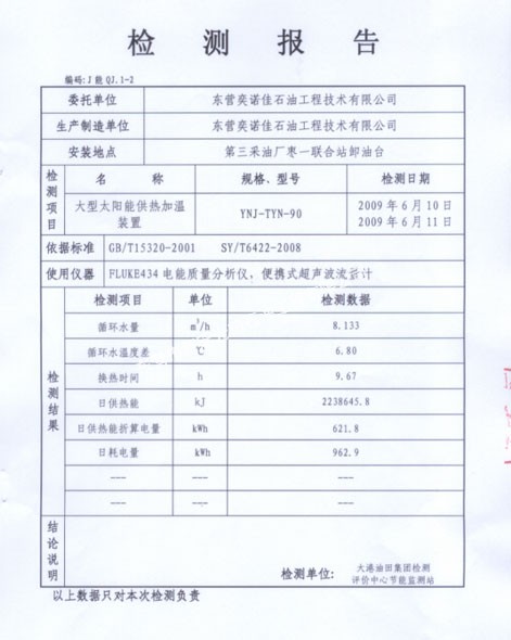 大港油田第三采油廠棗一聯(lián)合站卸油臺(tái)應(yīng)用光熱加熱裝置替代原電加熱裝置(2009年5月4日正式運(yùn)行)